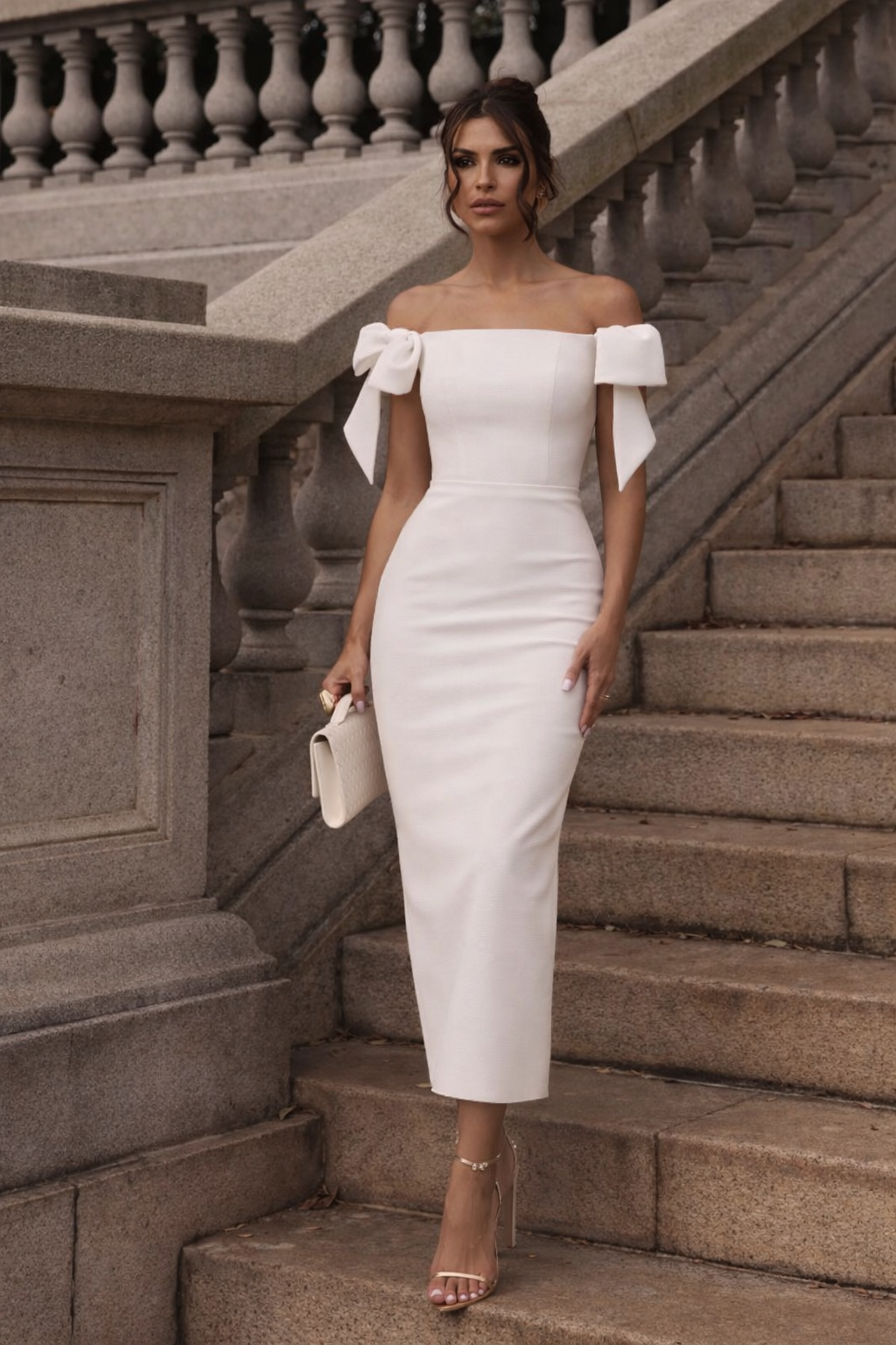 Vestido MIDI em tecido Tafta, corpete com varetas de suporte de peito