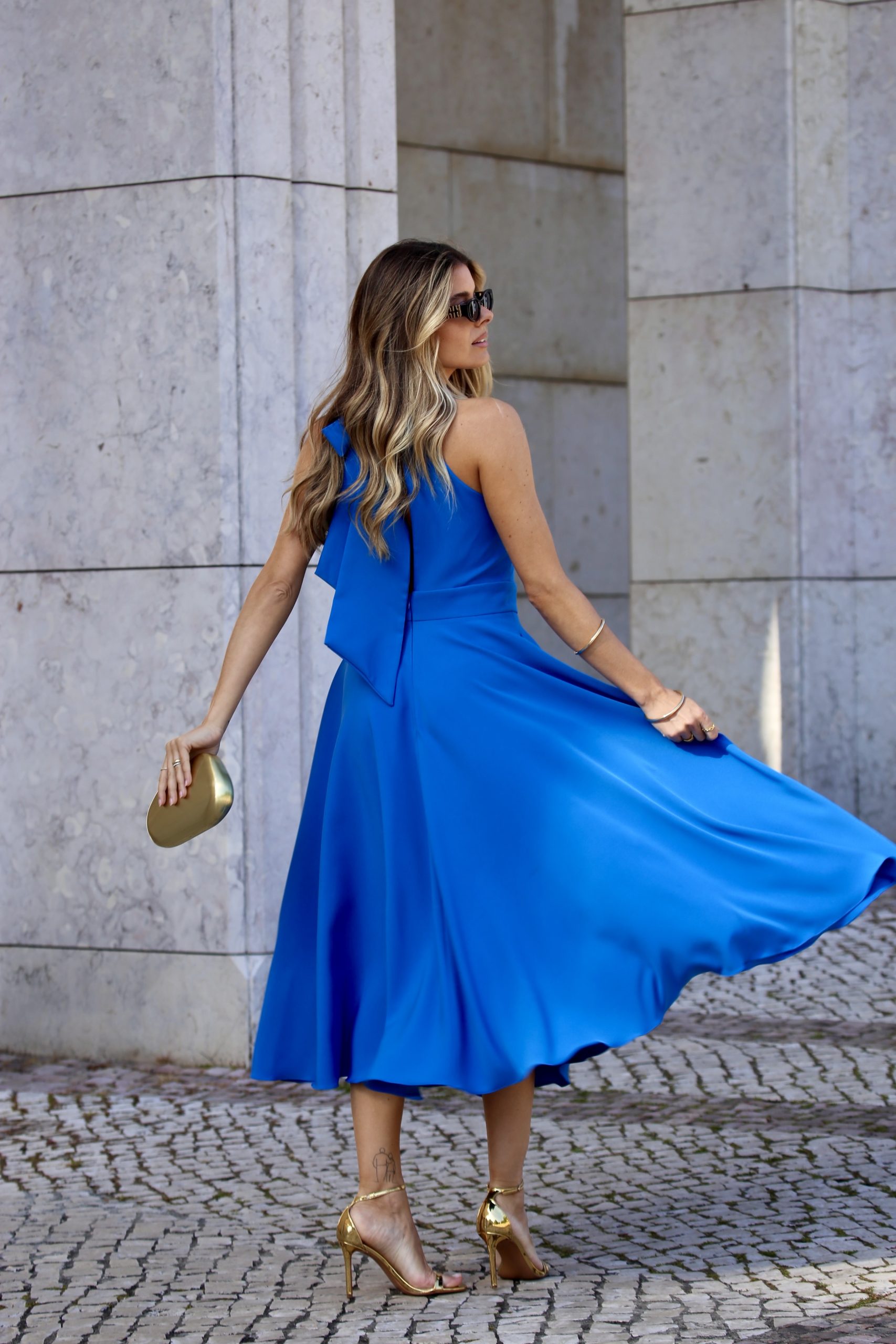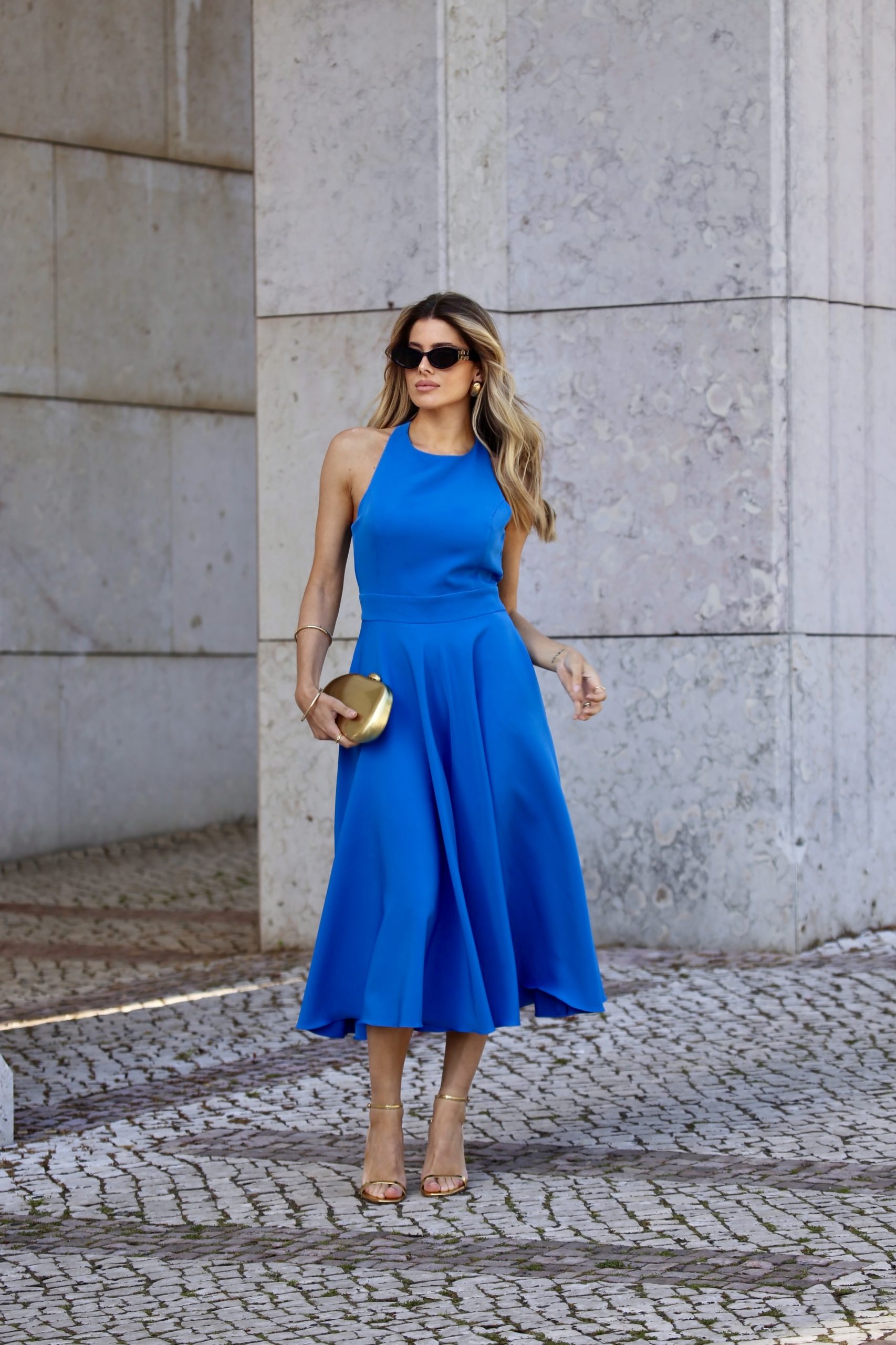 Vestido elegante com saia midi, tem bolsos para tornar o vestido mais casual